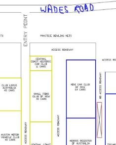 Continue along Russell, Ryrie and Suttor Roads to the senior swimming pool then up to the tennis courts where A ticket holders will be diverted via the Hay Shed onto the Price Fields. B, C and E ticket holders will then be directed around to Doyle fields. As per past years Jaguar club members with a green ticket will be located on the very top field. Again there will be signs to guide you.