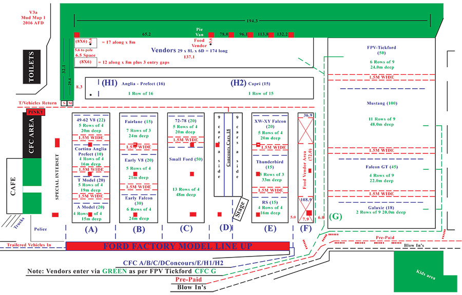 Below is the map showing where we will be located on the day(in area "C" which is right next to the concourse cars and in front of the special Ford display). See you all there.